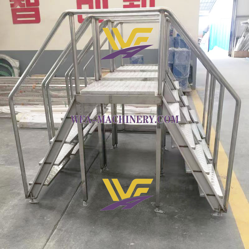 Fixed transfer platform is used for operator convenience walking across the slaughterhouse plant.