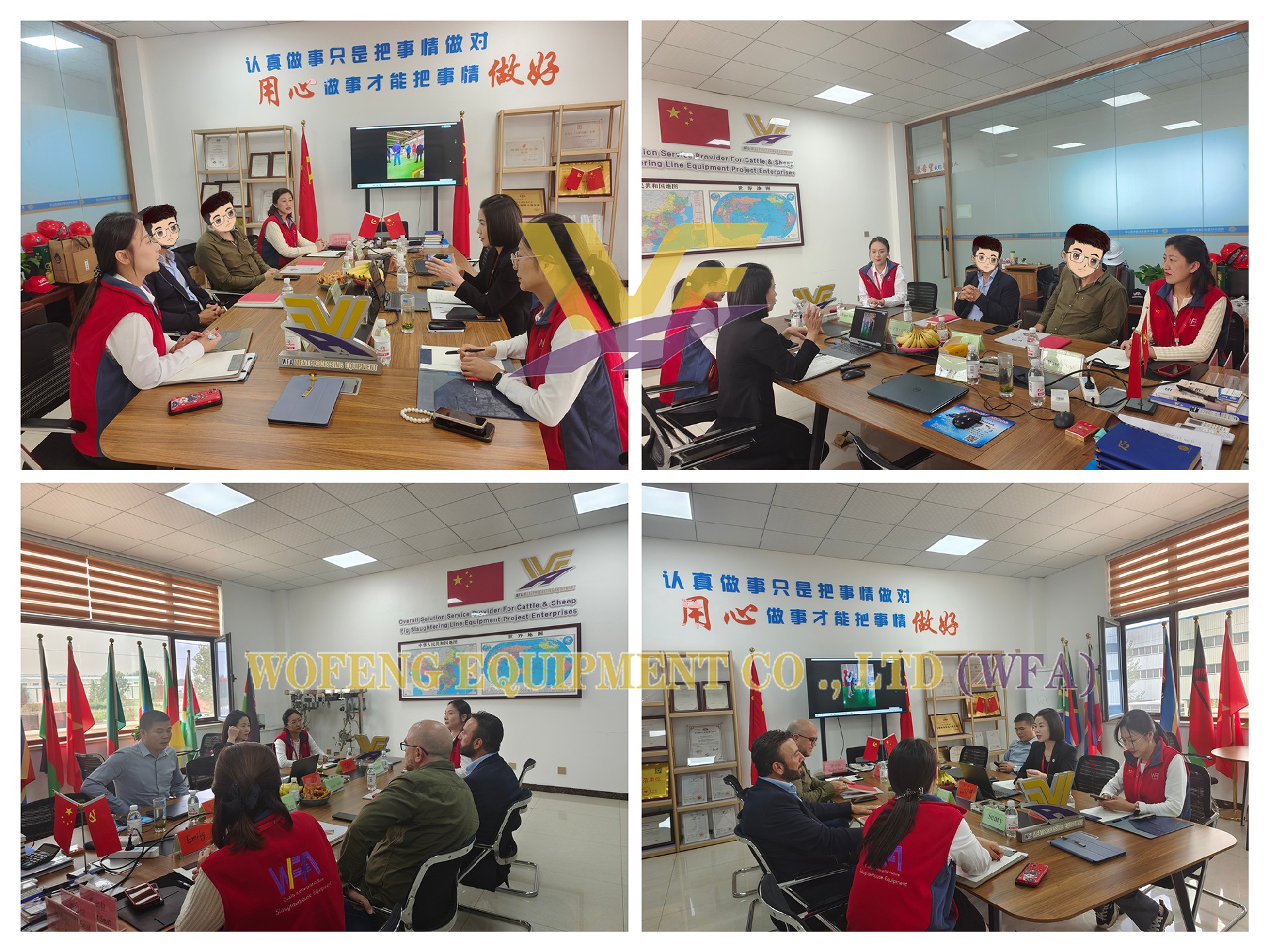 Buyers from Canada for the complete cattle and pig slaughtering line equipment meet at WFA factory