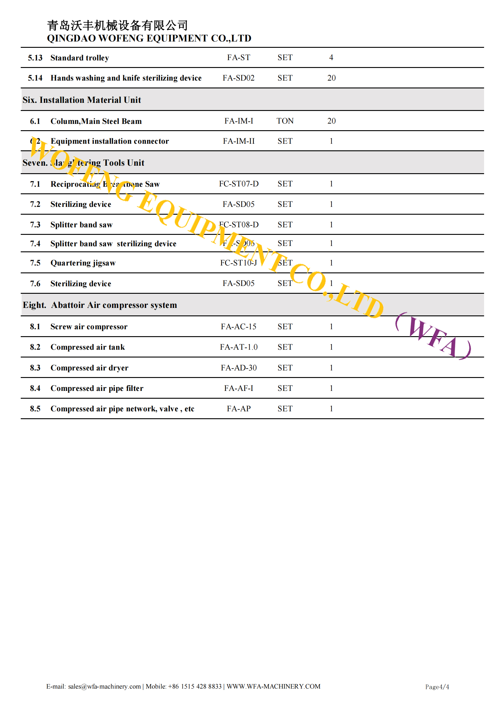 The 50 cattle & 150 sheep slaughtering line equipment sheet