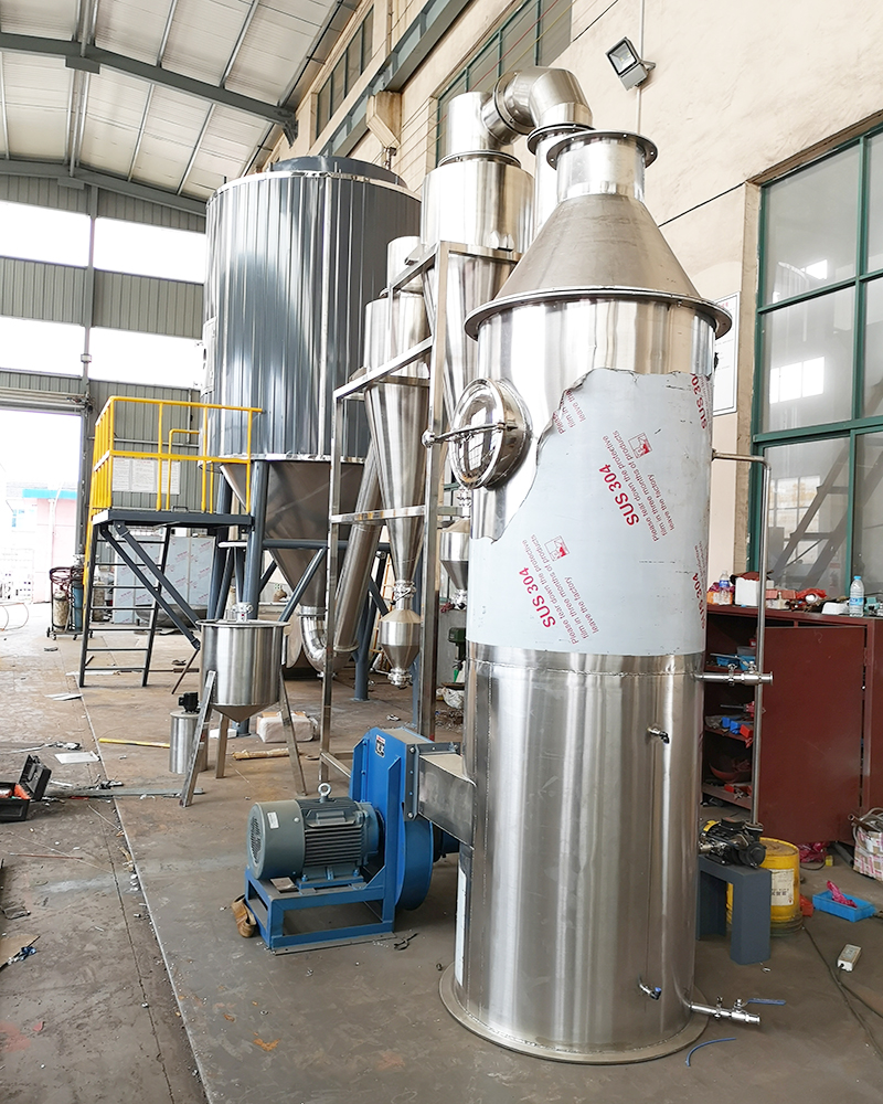 Application::The animal bood dryer powder spray dryer system abattoir machine adopts full close structure with primary middle and high effect air filter to fit one hundred thousand grade requirement, the tower body is provide cooling air jacket to make wall temperature less than80 degree, when the material stops on wall will not to be preheated and softened, it increases the powdercollection rate (95%) and will not appear mixing and sticking wall phenomenon