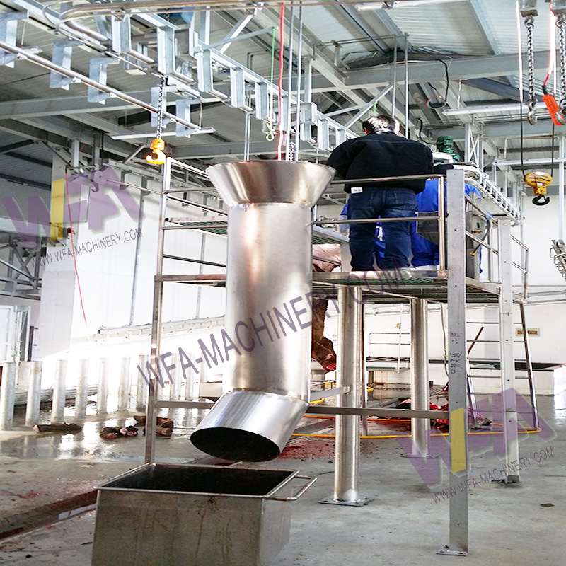 The animal hooves sliding chute slaughterhouse drop the cattle hooves from high lever to standad trolley in slaughterhouse plant