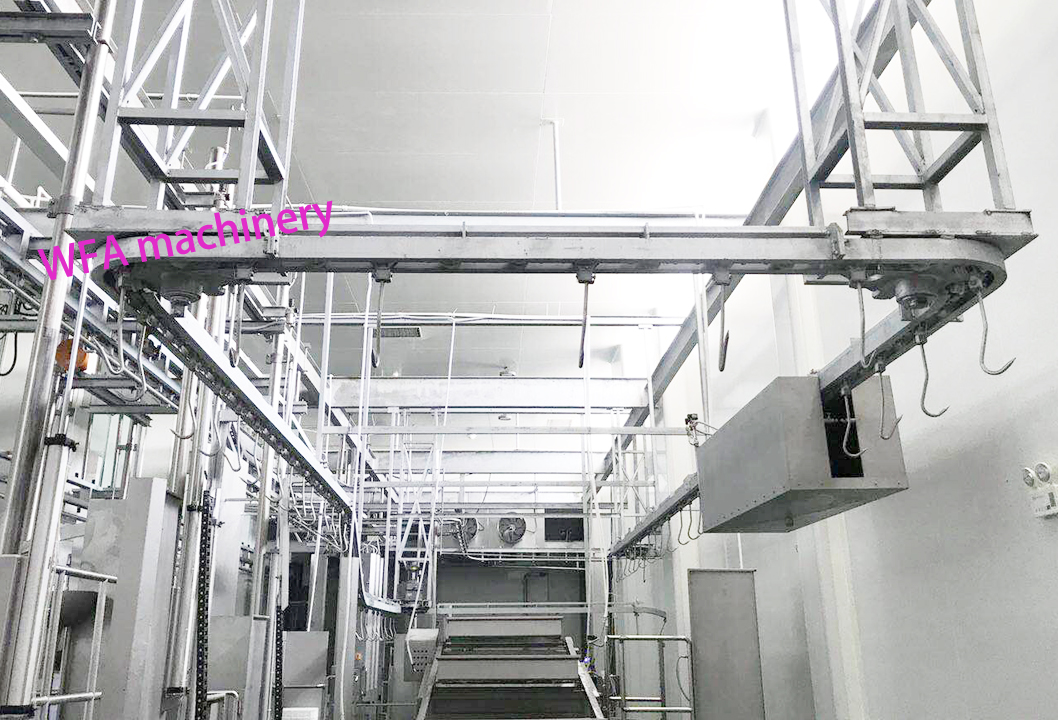 Application:The cattle red offal head inspection conveyor slaughterhouse equipment fulfills the function of transporting these pieces from the extraction dressing platform to the veterinary inspection point, in synchronization with the carcass conveyor, to facilitate said inspection. This conveyor is adapted to the layout and heights of the line and its design so that operators can carry out their work ergonomically and quickly to help the productivity of the line