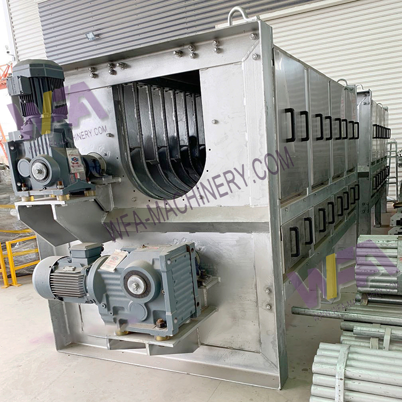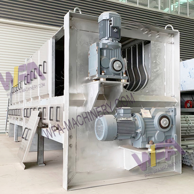 Application:The pig bipolar linkage spiral type dehairing machine slaughter equipment dehairing machines are equipped with two scraper shafts with helical blade position, which achieve the highest quality of hair removal in pigs of all weights. hair collection chute can be attached to the machine at the bottom. the water distribution system at the top of the waxing line achieves channels