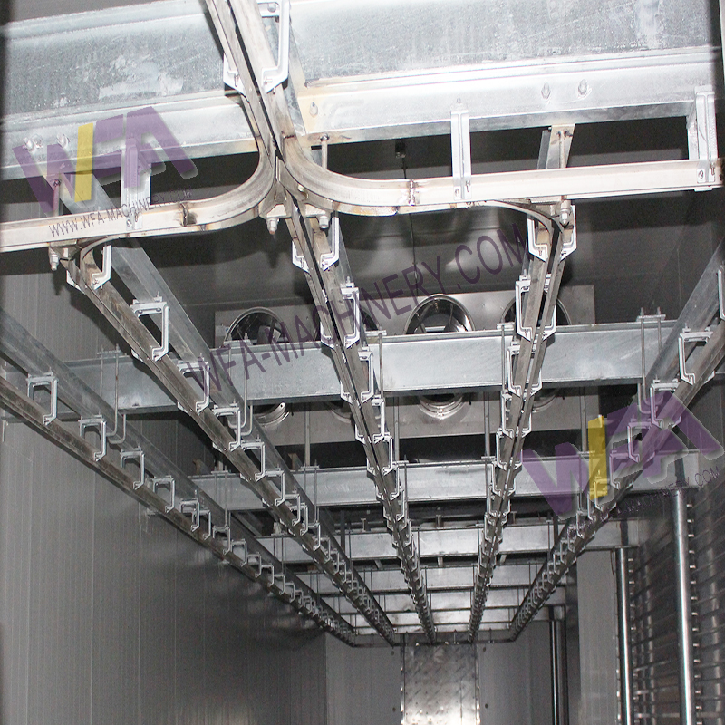 Application:The pig carcass transportion and store convey rail slaughter pork store the pig carcass for chilling, freezing, and transportation to all functional rooms,such as deboning,dispatching