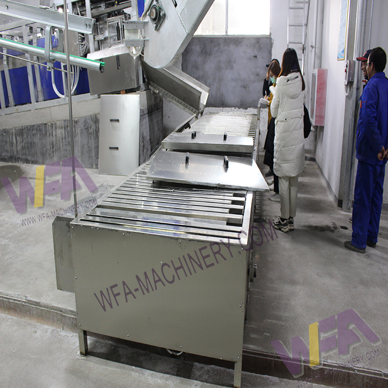 Application:The pig killing & bleeding conveyor table pig slaughter mMachine receiving the pig from stunning machine for killing and bleeding, and transporting pigs to shackling station .at the same time used to collect blood flow into bleeding tank