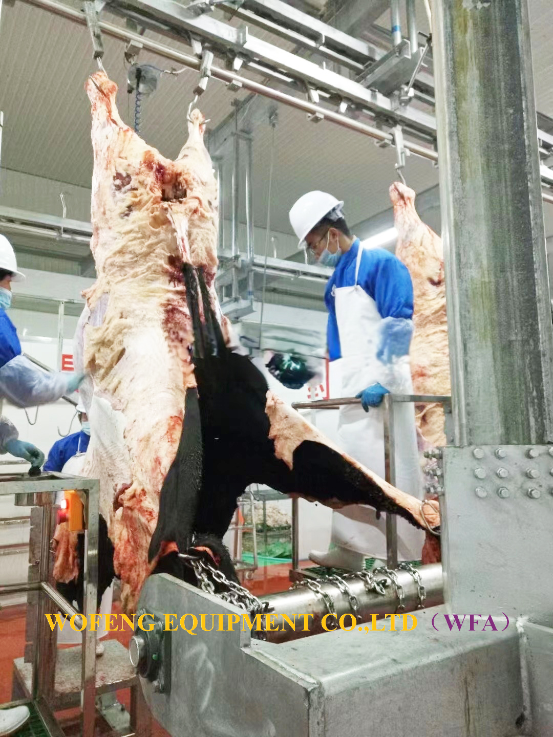 Application:The cow dehiding hide puller cattle skinning machine slaughterhouse besides efficiency and reliability,ergonomics and from the guiding principles,all of dehiders are made for vertical downward movement to minimize and eliminate any contamination that can be caused from skin.a dehiding work performed with the highest quality standards.without any damage to the carcass