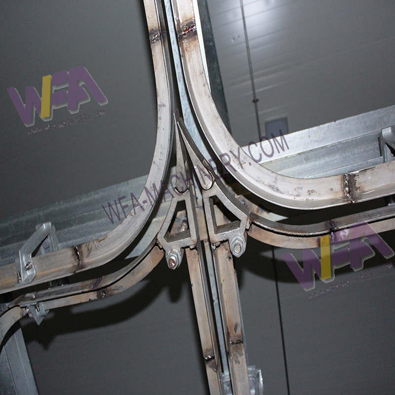 Application:The pig carcass transportion and store convey rail slaughter pork store the pig carcass for chilling, freezing, and transportation to all functional rooms,such as deboning,dispatching
