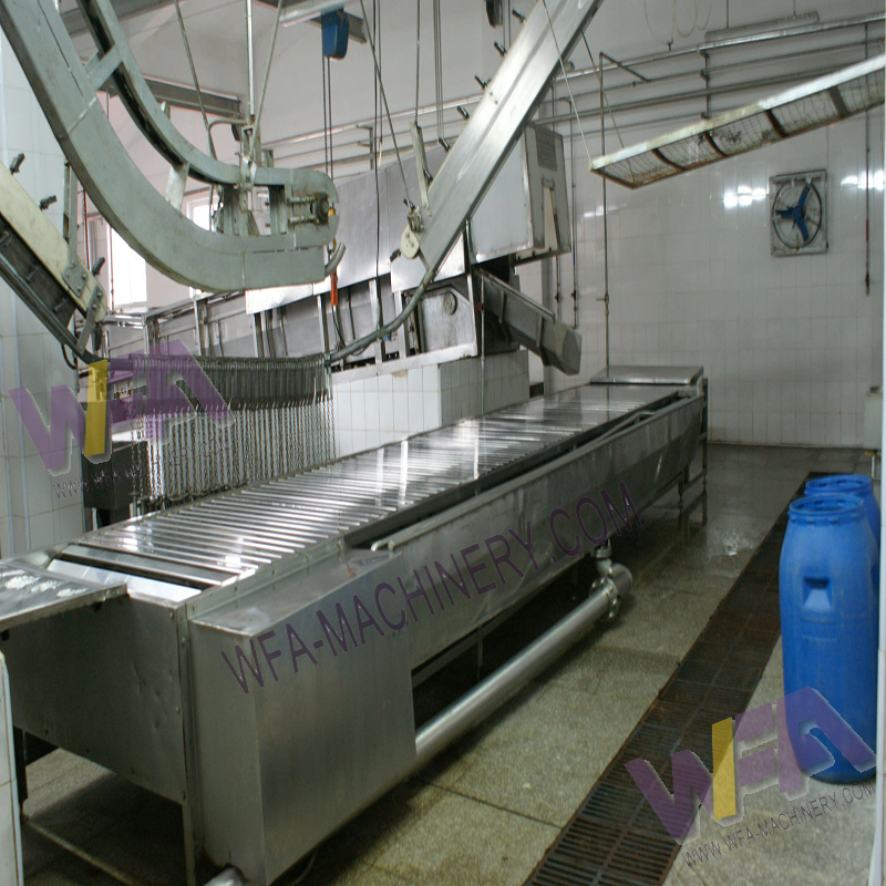 Application:The pig killing & bleeding conveyor table pig slaughter mMachine receiving the pig from stunning machine for killing and bleeding, and transporting pigs to shackling station .at the same time used to collect blood flow into bleeding tank