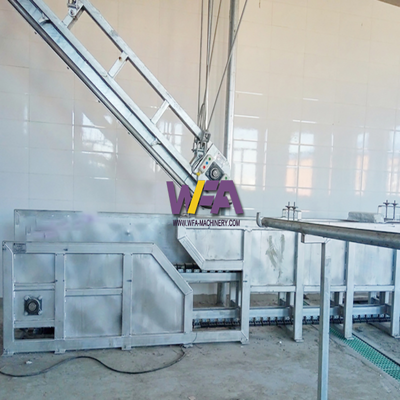 Application:The pig straddle-type conveyor pig slaughter house conveyor the living animal to the point of stunning requires tunnels of conduction slaughtering line