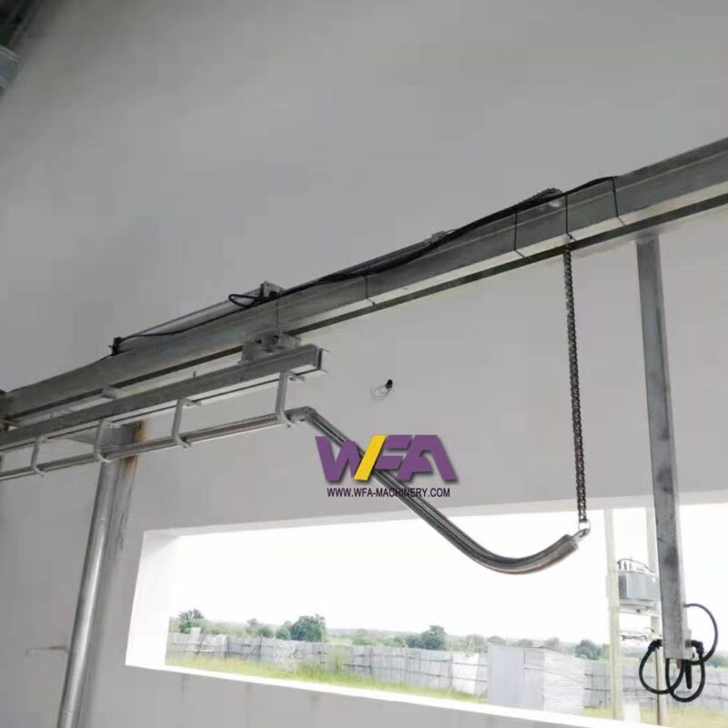 The pneumatic lifting system slaughter equipment lifting the fore quarter carcass to the convey rail at slaughterhouse