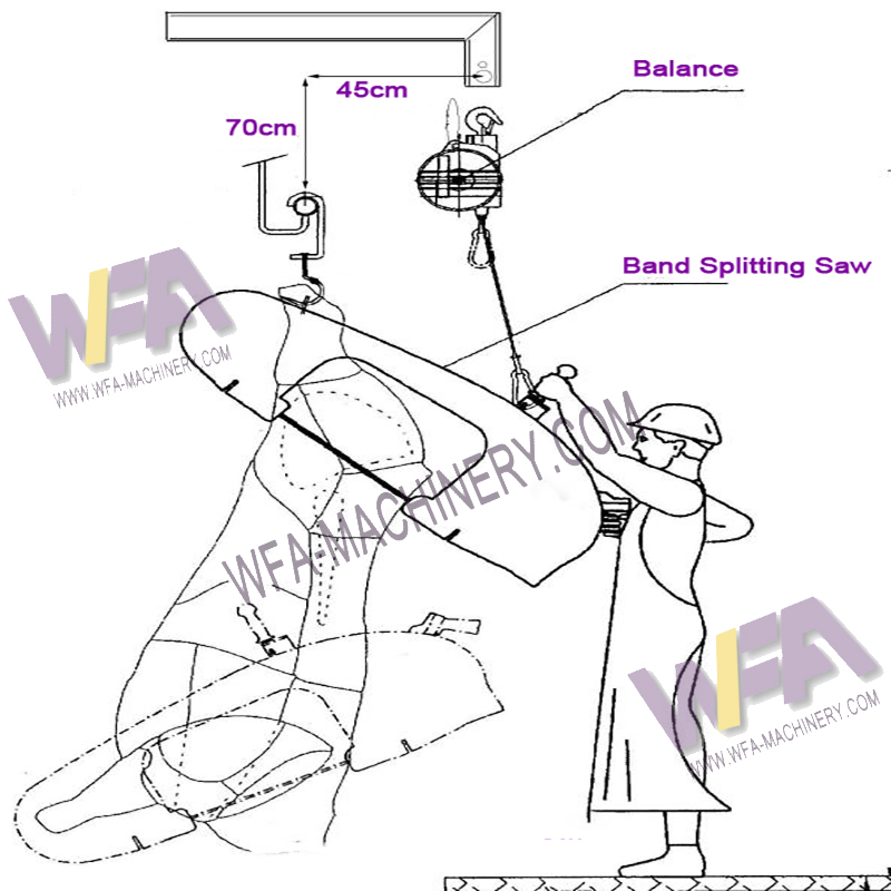 Application:The splitter bandsaw carcass splitting saw for cut cattle into two pieces. Special water injection system is available.slaughterhouse equipment
