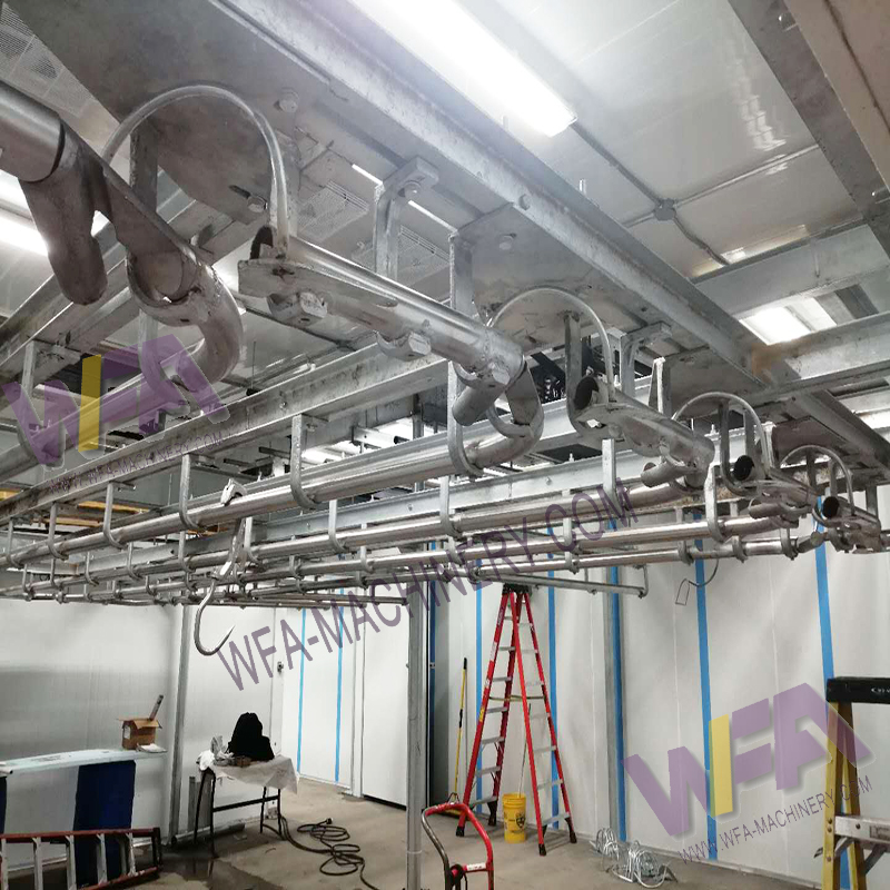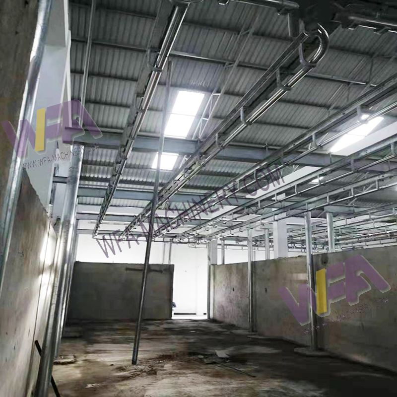 Application:The tubular rail transportation system cooling convey slaughter house for cattle carcass chilling, freezing, and transportation to all functional rooms, such as deboning, dispatching and so on at slaughter house plant