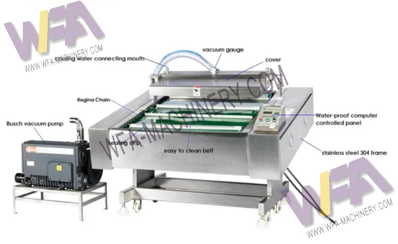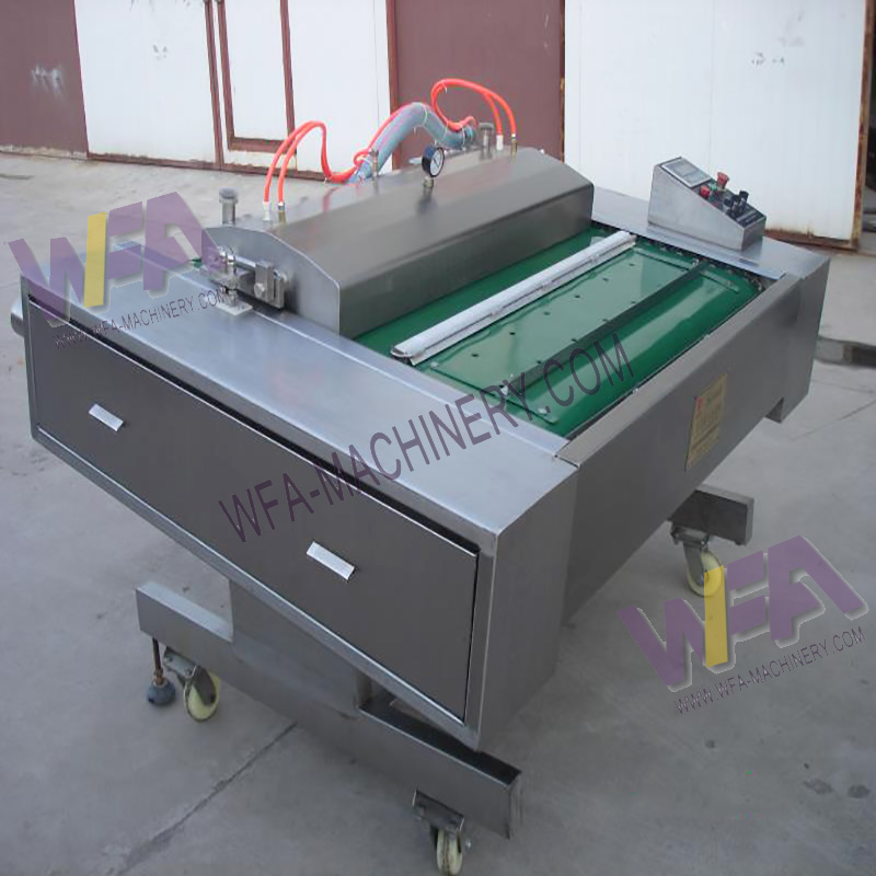 Application:The vacuum meat packing machine slaughterhouse conveyor belt type automatic vacuum packing machine is used for all kinds of products,available vacuum or raw food, cooked food, seafood, frozen product, vegetables, dried vegetables, fruits, edible mushrooms, medicine, electronic components, clothes and other vacuum products